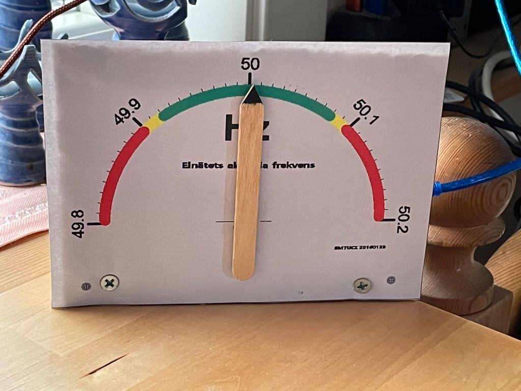 Nu kan du följa nätets frekvens, på morgonen brukar nätet vara belastat och frekvensen sjunker. Börjar frekvensen närma sig 49,8Hz så är det dax att leta fram ficklampan innan strömmen går på grund av överbelastning!
