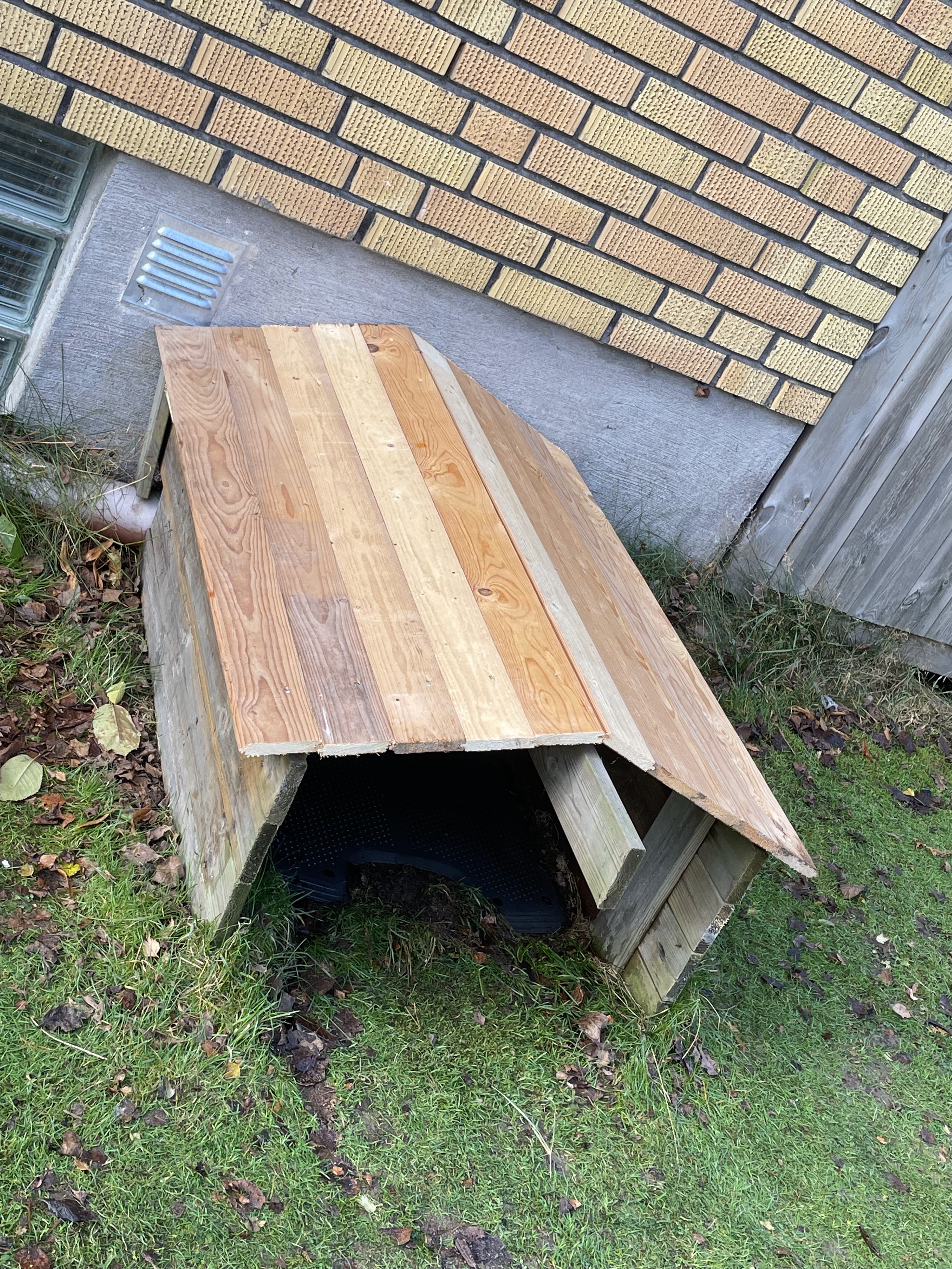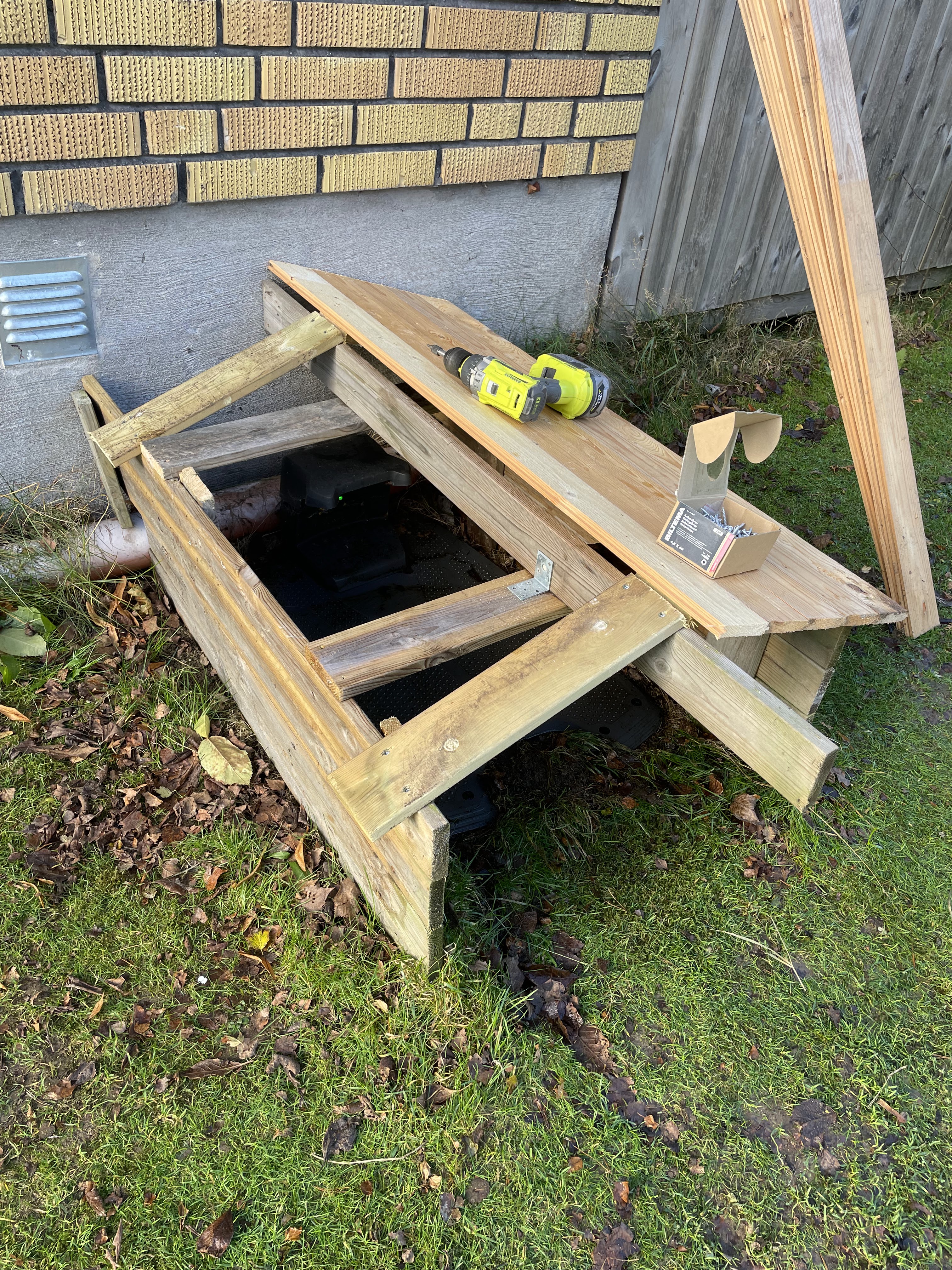 -Skall försöka hitta ett bra material att täcka taket med. Tills dess så får det bli en presenning av något slag, så att inte fukt tränger in och förstör bräderna.