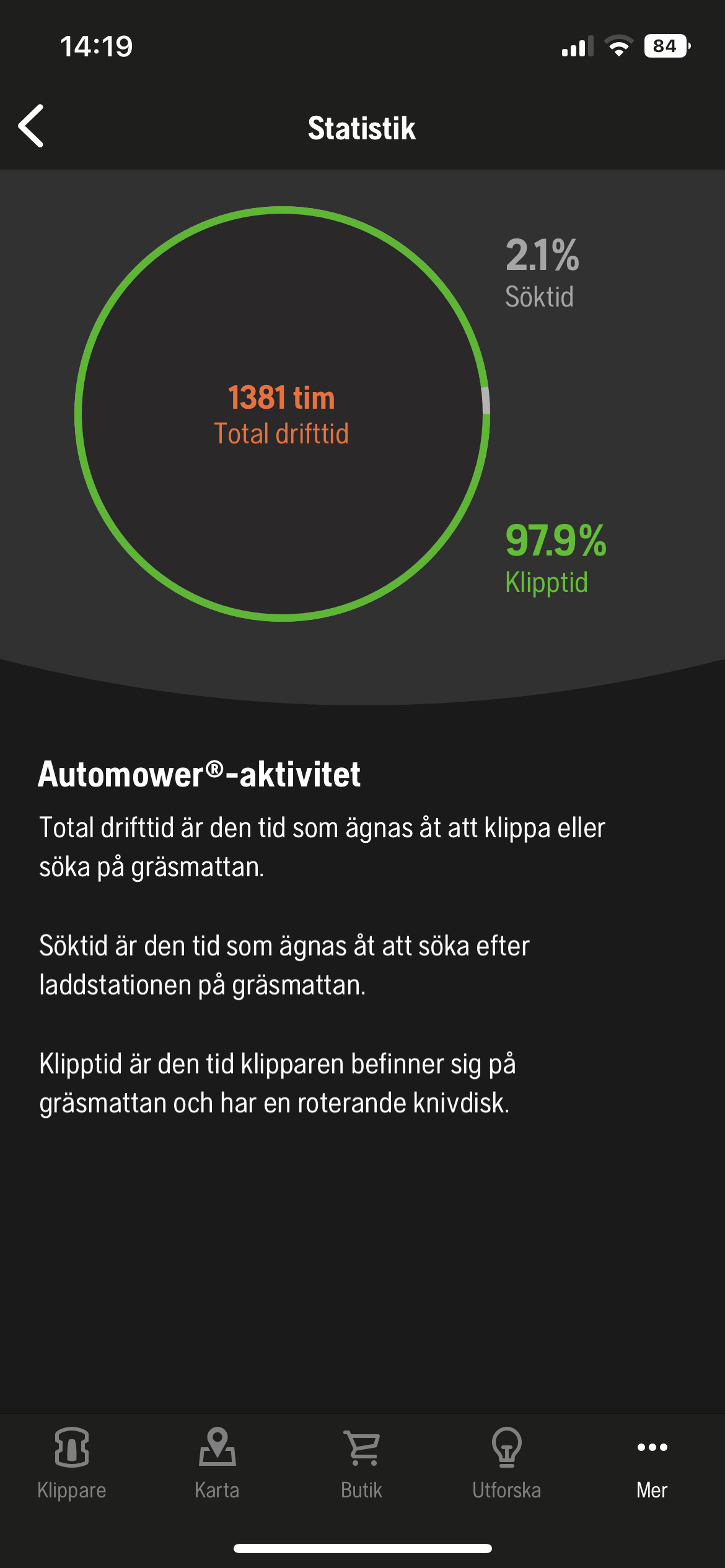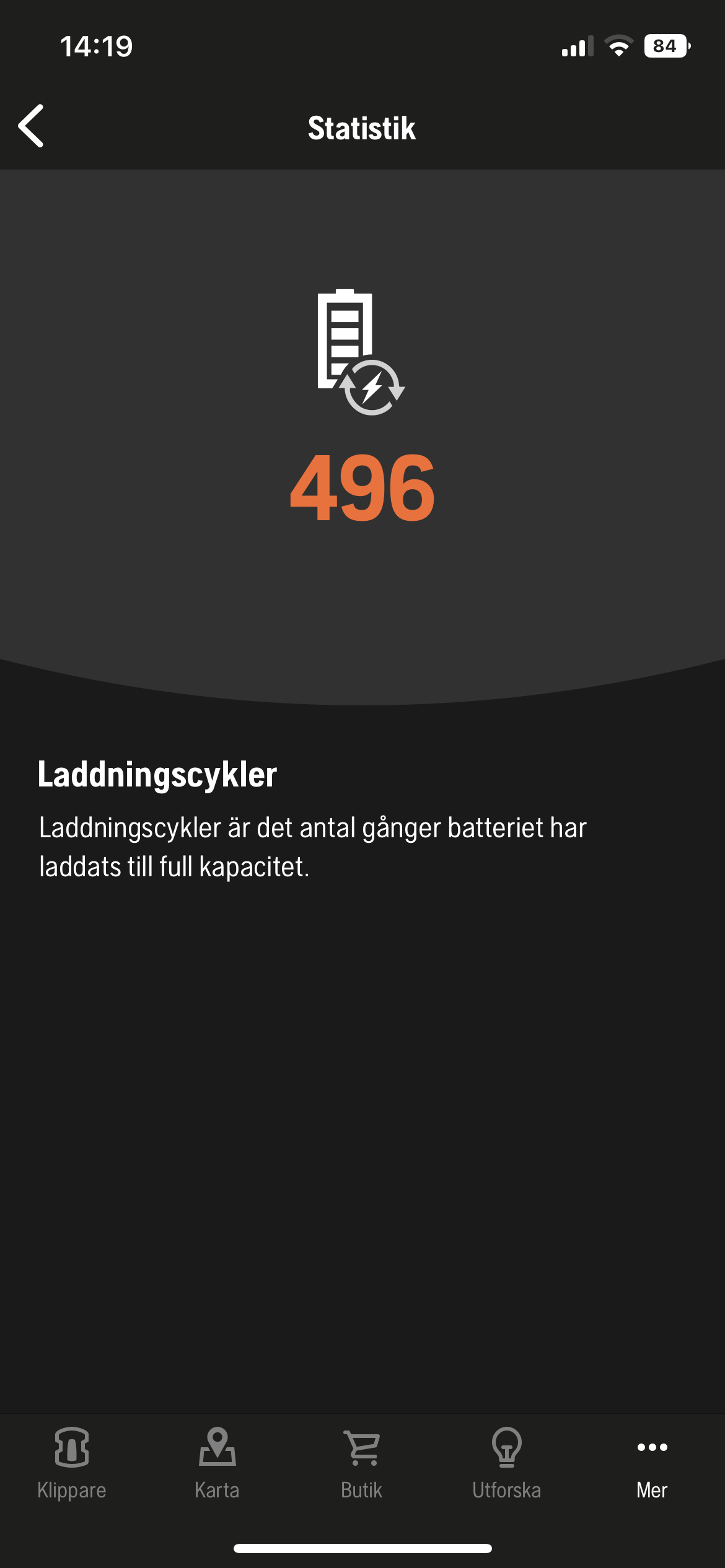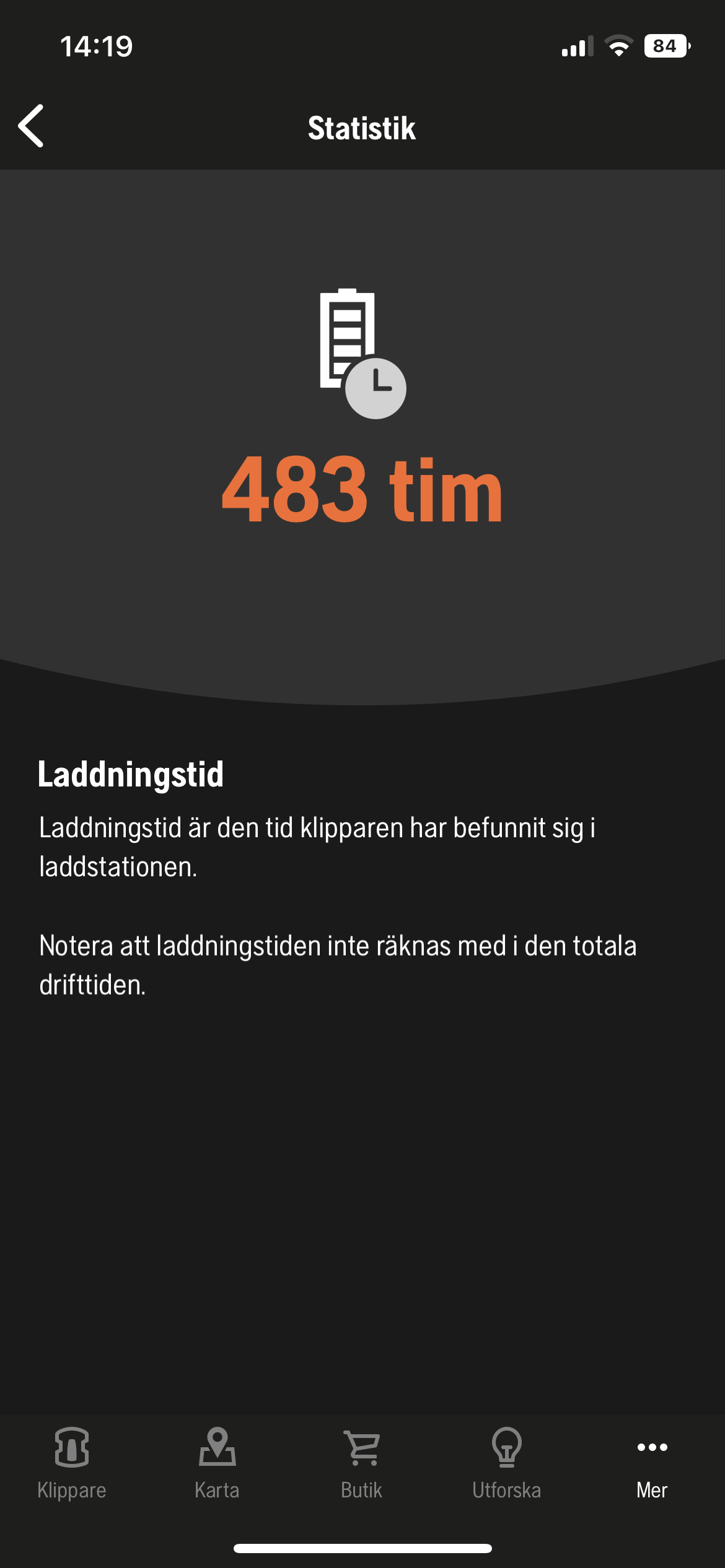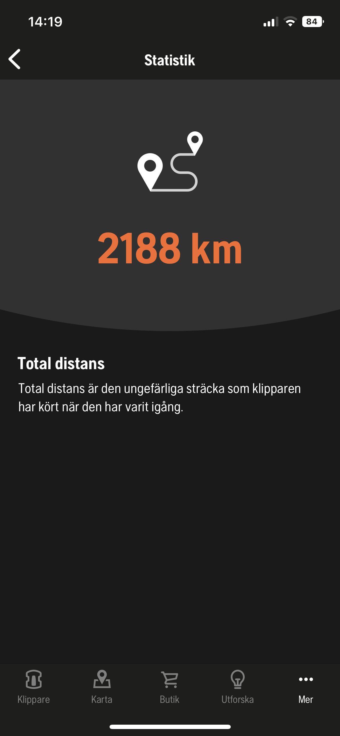 Efter att blivet rengjord och ompysslad skall hon nu få vila till våren. Hon kommer anslutas till ström så att batteriet håller sig friskt. Här är lite statistik från appen: