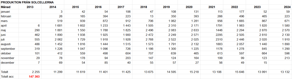 Produktionsutfall från solcellerna